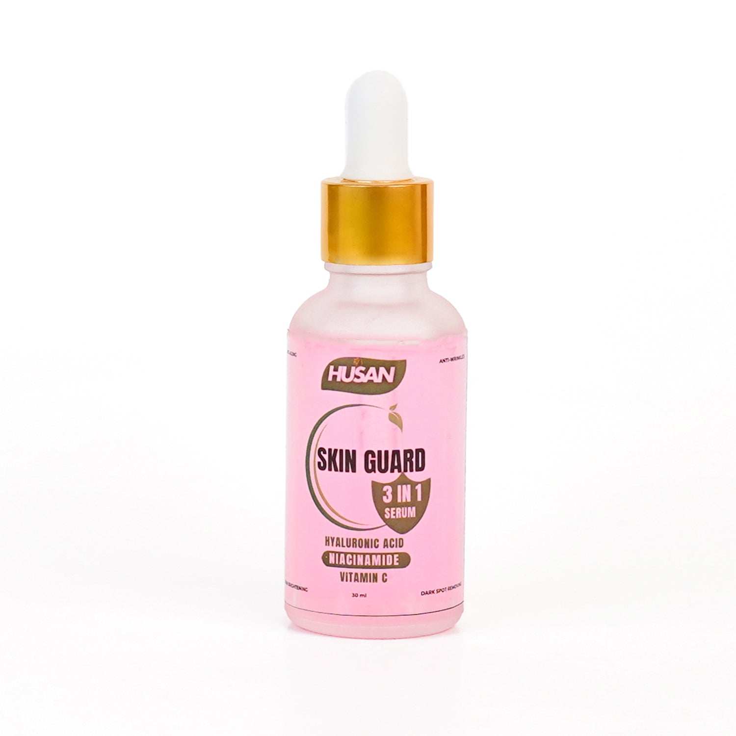 Husan’s 3-in-1 Serum is a powerhouse blend of Hyaluronic Acid, Vitamin C, Niacinamide, and Glutathione, designed to hydrate, brighten, and restore your skin’s natural glow. This lightweight, fast-absorbing formula deeply nourishes, reduces dark spots, evens skin tone, and fights signs of aging—giving you radiant, youthful skin with every use.